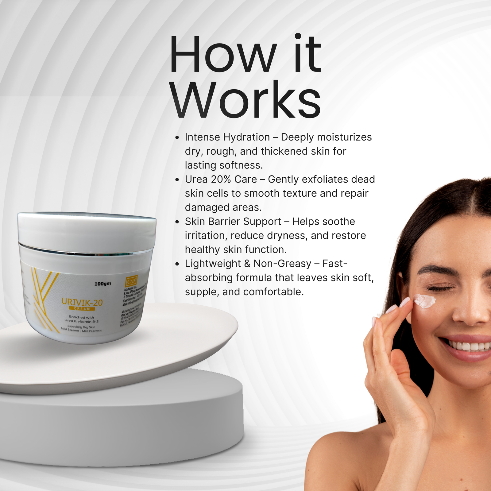 Exfoliating Action – Urea 20% gently removes dead skin cells for smoother texture.